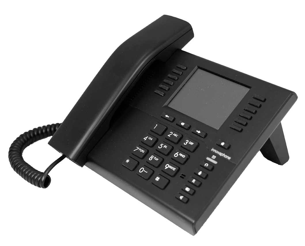 innovaphone IP112: Allround Telefon mit Farbdisplay und USB Headset-Anschluss, gewinkelt, (1000 x 756px)