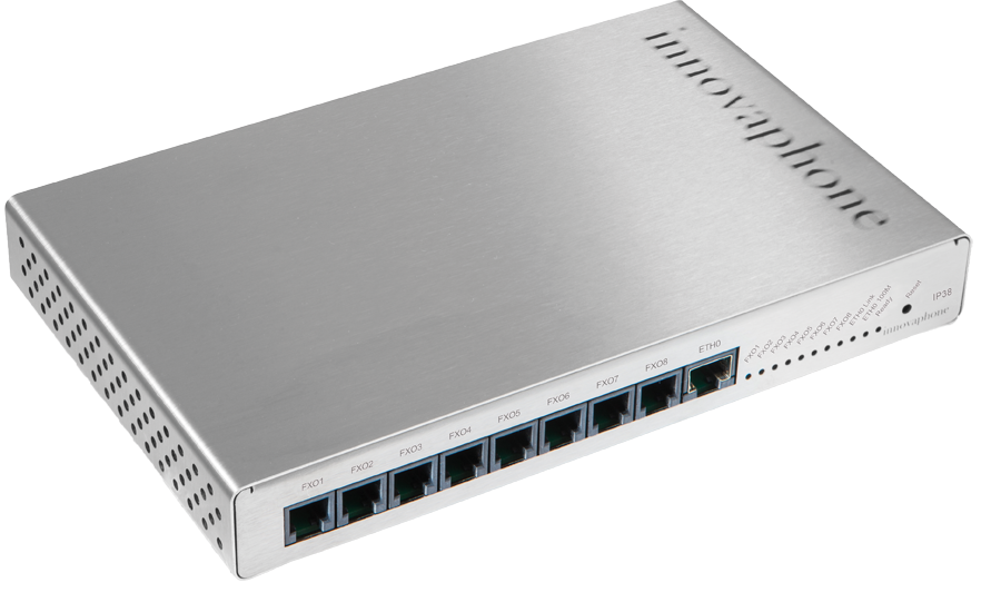innovaphone IP38: Gateway VoIP con ocho interfaces analógicas (FXO), lateral, (1000 x 756px)