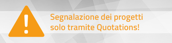 Attenzione: a partire dal 05.01.2026 i progetti potranno essere segnalati esclusivamente tramite Quotations.